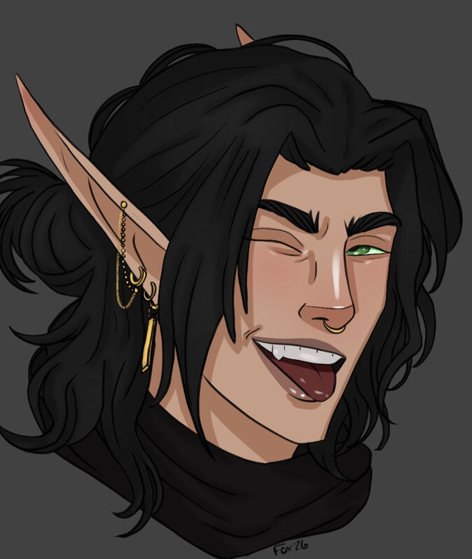one. Dae suffers from absence seizures which lead to some really wild, vivid hallucinations that play into his paranoia though they are less common as of late.two. He has silent coping mechanisms for when he’s overwhelmed - he’ll knead against whatever is near, or fidget with the edges of his sleeves. The tremors never truly leave his fingers, whether they're from anxiety or the chill he can't shake.three. Dae is cold to the touch, body temperature naturally running lower than most of his kin. It's not enough to suggest undeath but if you've ever experienced a cold hand on your back, you probably understand the urge to pummel.four. He's slow to trust. A hand skimming his back might as well be a brand. A pinky brushing his can make him flinch and if it lingers? His face may remain calm but his brain is scrambling for an exit.five. Tired of questions concerning his mortality, he's started wearing tinted lip balm, bringing some color to an otherwise washed out face. Truthfully? It doesn't help much, he just likes the taste.six. He has some sort of deep, personal beef with onions.