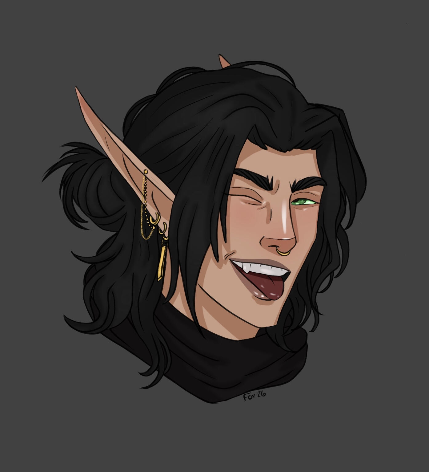 one. Dae suffers from absence seizures which lead to some really wild, vivid hallucinations that play into his paranoia though they are less common as of late.two. He has silent coping mechanisms for when he’s overwhelmed - he’ll knead against whatever is near, or fidget with the edges of his sleeves. The tremors never truly leave his fingers, whether they're from anxiety or the chill he can't shake.three. Dae is cold to the touch, body temperature naturally running lower than most of his kin. It's not enough to suggest undeath but if you've ever experienced a cold hand on your back, you probably understand the urge to pummel.four. He's slow to trust. A hand skimming his back might as well be a brand. A pinky brushing his can make him flinch and if it lingers? His face may remain calm but his brain is scrambling for an exit.five. Tired of questions concerning his mortality, he's started wearing tinted lip balm, bringing some color to an otherwise washed out face. Truthfully? It doesn't help much, he just likes the taste.six. He has some sort of deep, personal beef with onions.